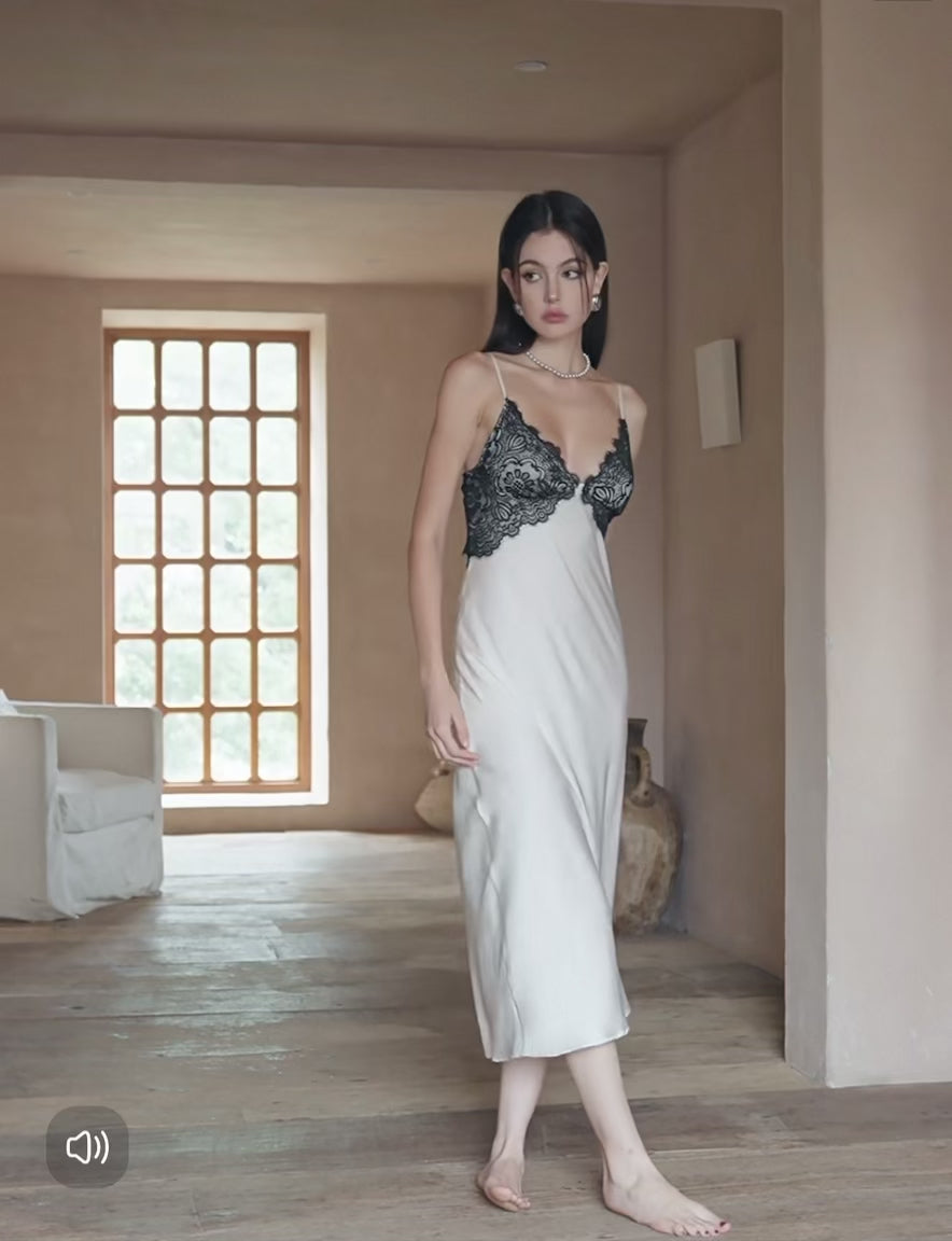 Samira midi lace and satin slip