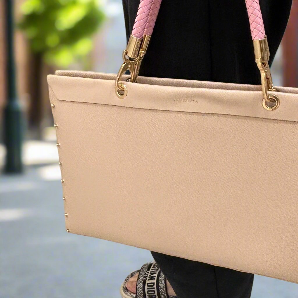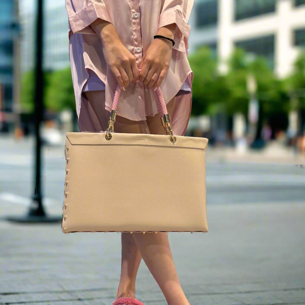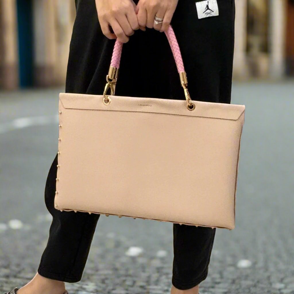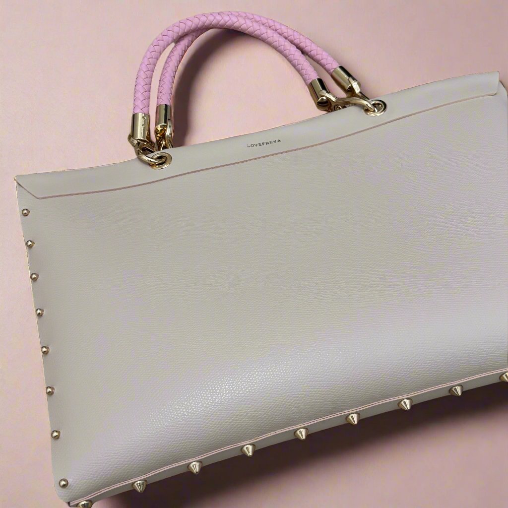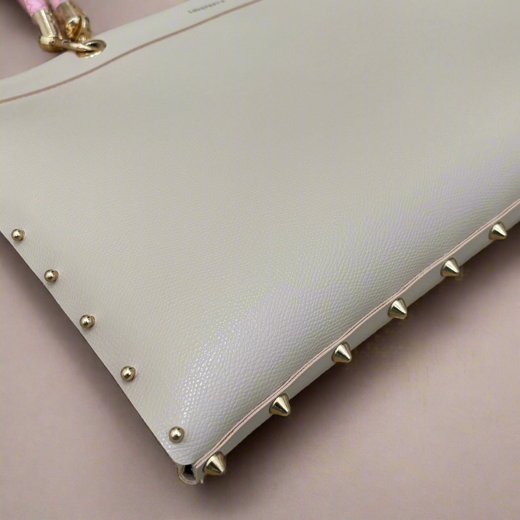 Elevate your work style with our studded leather briefcase. Changeable handle for versatility to carry in different ways. Make a statement while keeping your essentials organized.
